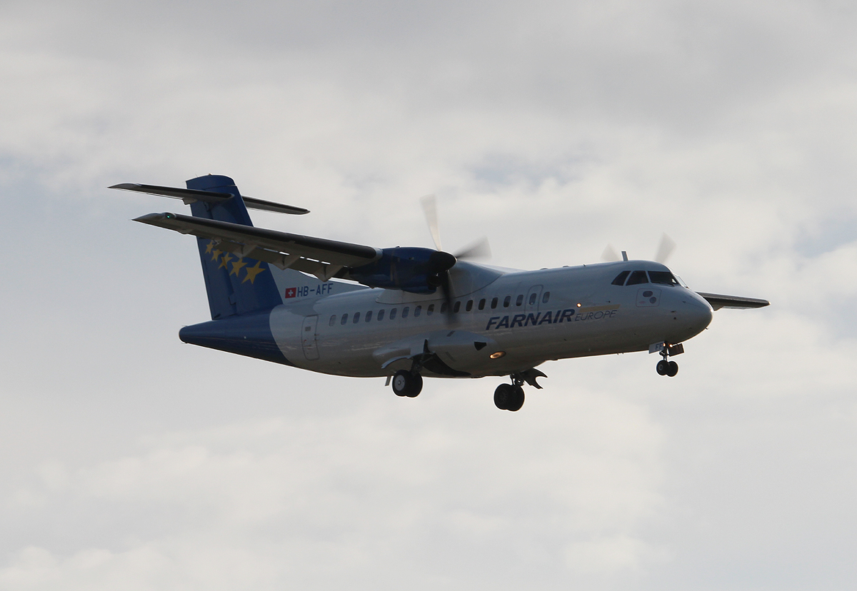 Farnair Europe ATR-42-320 HB-AFF bei der Landung in Berlin-Tegel am 09.11.2013