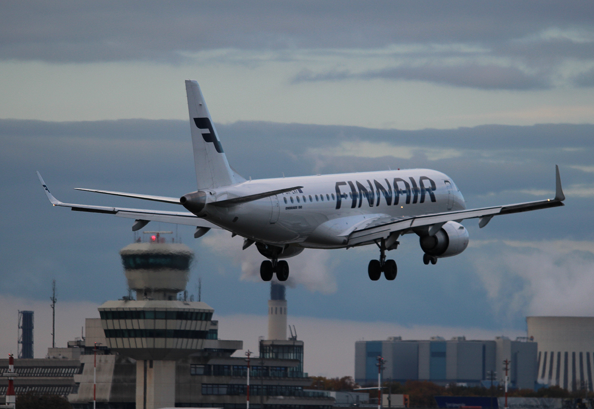 Finnair ERJ-190-100LR OH-LKF bei der Landung in Berlin-Tegel am 09.11.2013