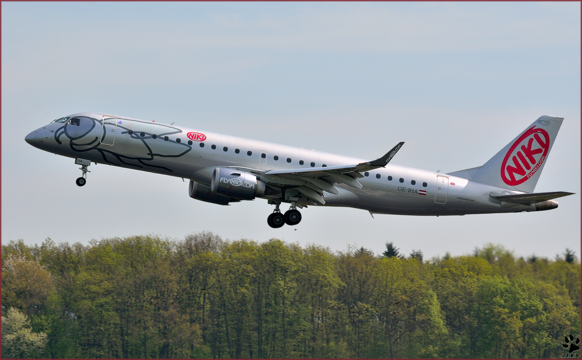 NIKI OE-IHA, Embraer ERJ-190-100LR bei Trainingsflug auf Maribor Flughafen MBX. /8.4.2014