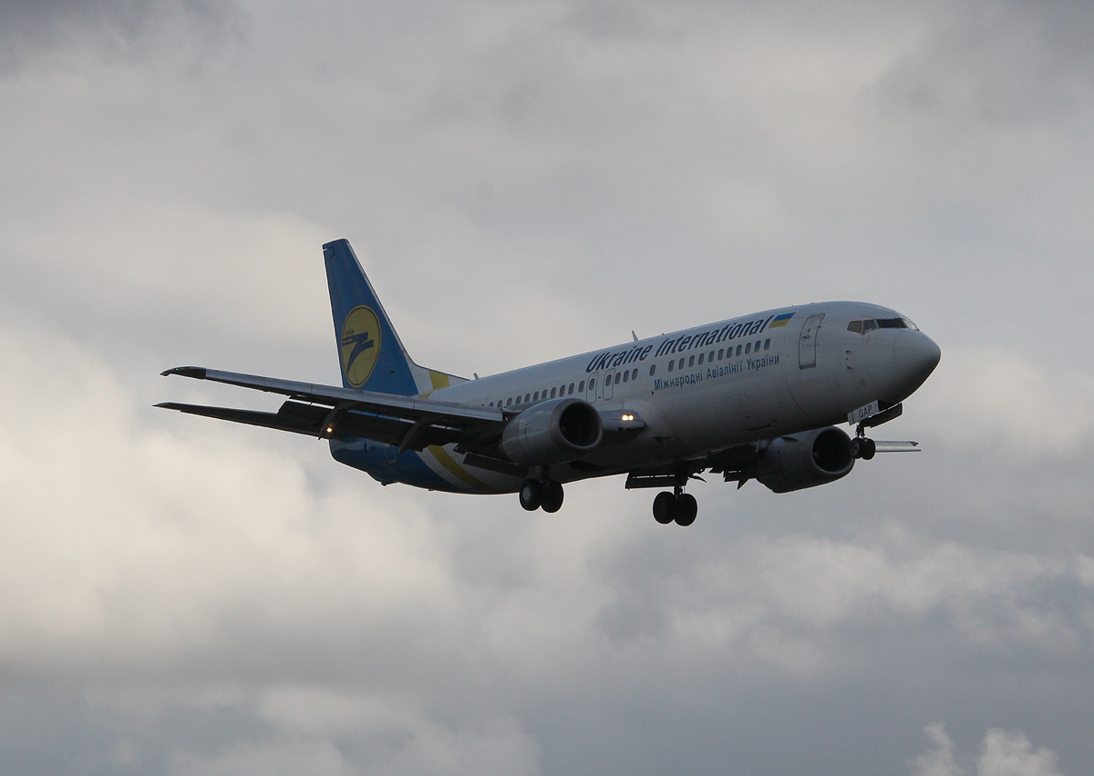 Ukraine International Airlines B 737-4Z9 UR-GAP bei der Landung in Berlin-Tegel am 09.11.2013