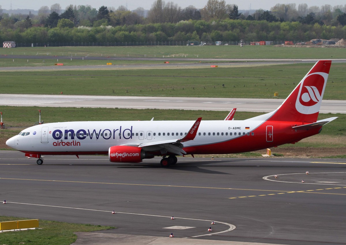 Air Berlin, D-ABME, Boeing, 737-800 wl (oneworld-Sticker), 02.04.2014, DUS-EDDL, Düsseldorf, Germany