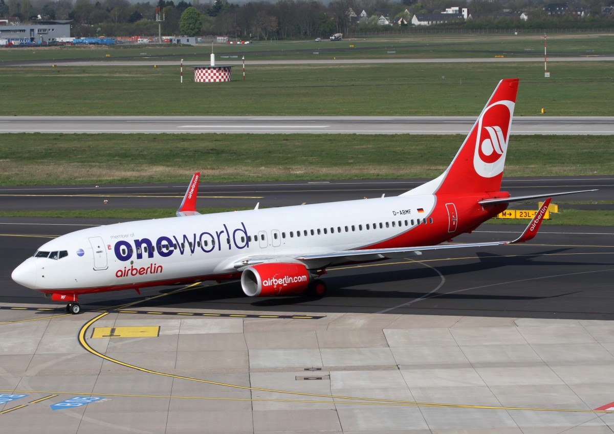Air Berlin, D-ABMF, Boeing, 737-800 wl (oneworld-Sticker), 02.04.2014, DUS-EDDL, Düsseldorf, Germany
