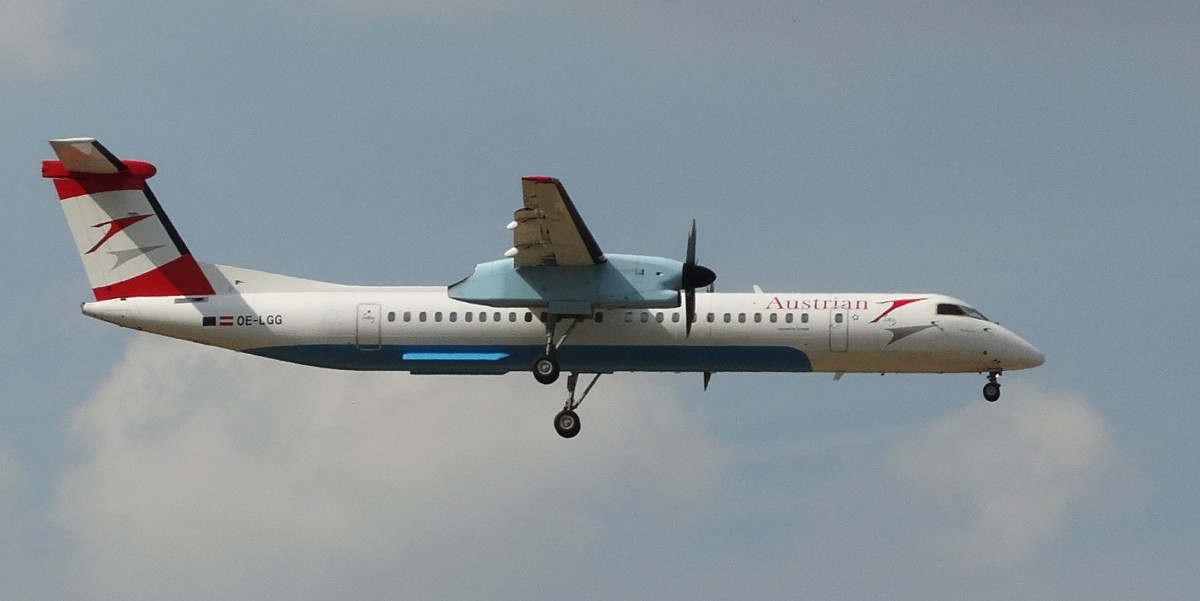 Austrian DHC-8-402Q (OE-LGG) landet am 24.04.14 in Frankfurt