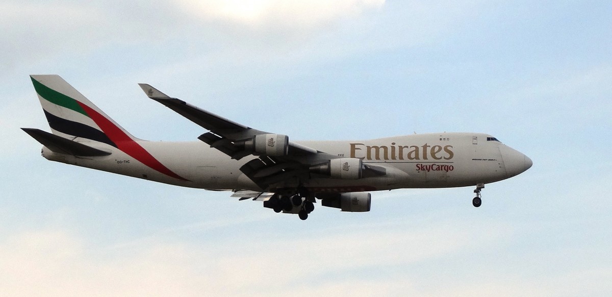 Emirates Sky Cargo Boeing 747 (OO-THC) landet am 24.04.14 in Frankfurt