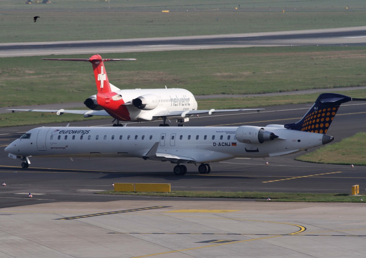 Lufthansa Regional (Eurowings), D-ACNP "ohne", Bombardier, CRJ-900 NG (m. Germanwings-Sticker), 02.04.2014, DUS-EDDL, Düsseldorf, Germany