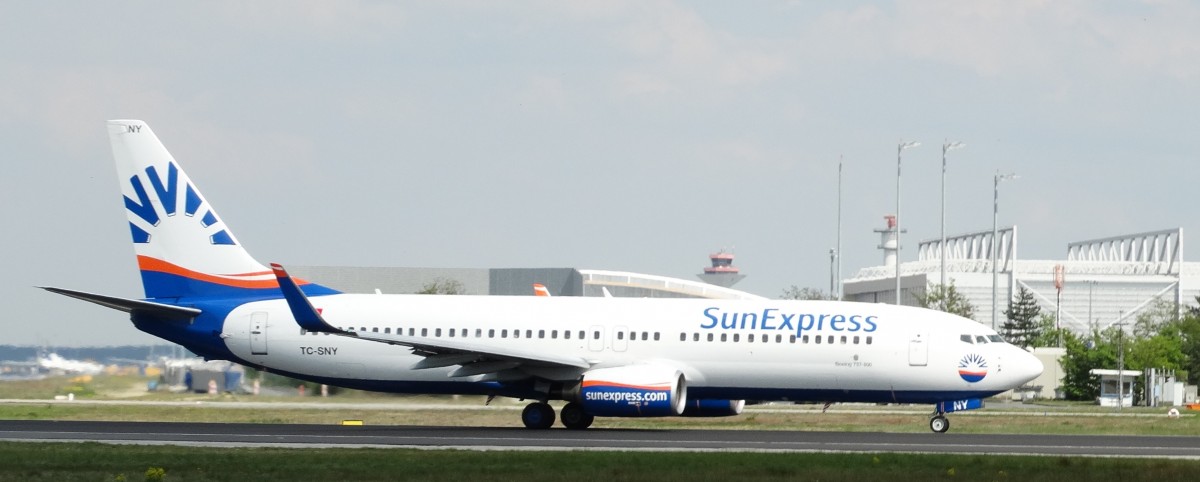 Sun Express Boeing 737-800 (TC-SNY) beireitet sich auf den Start vor am 24.04.14 in Frankfurt