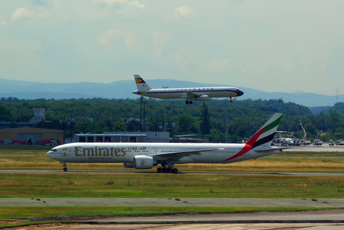 Emirates 777 300ER (Reg.: A6-EGS) im Anflug auf die RWY 07R in FRA am 08.08.2014