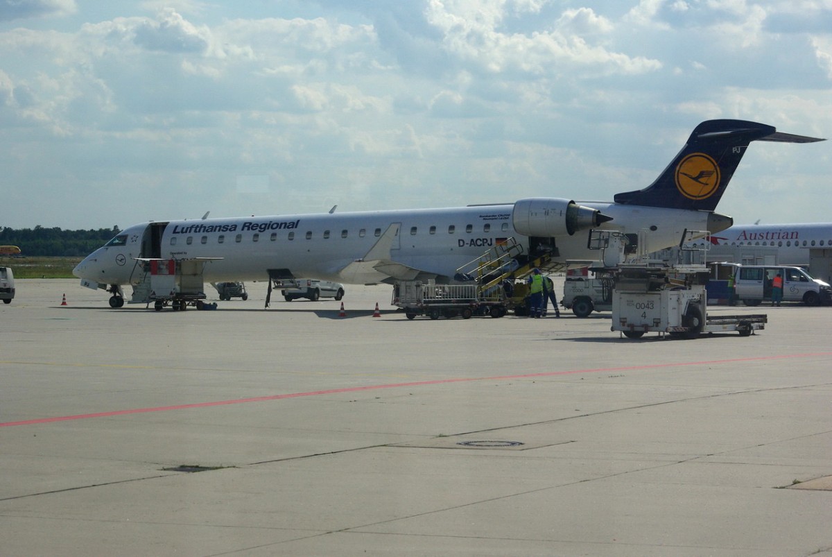 D-ACPJ Lufthansa Cityline Canadair CL-600-2C10 Regional Jet CRJ-701er Abfertigung am 16.07.2014 in Frankfurt