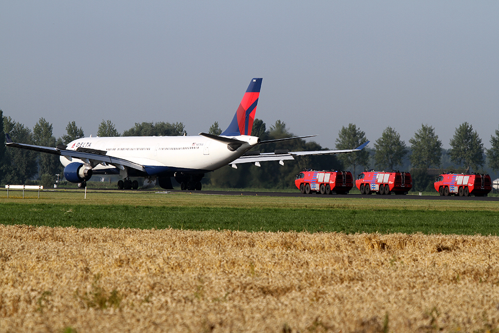 Delta A330 (Reg. N811NW) die nach einer Notlandung die RWY 18R in AMS geschlossen hat am 05.08.2014