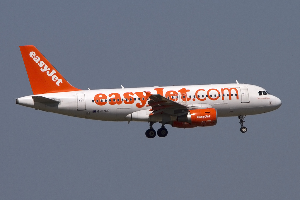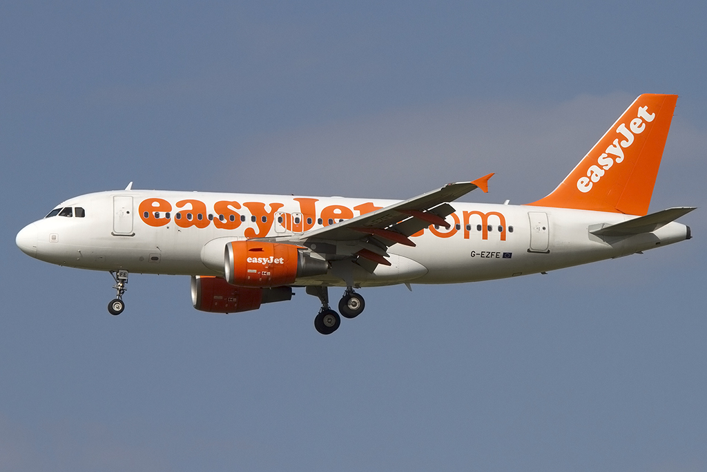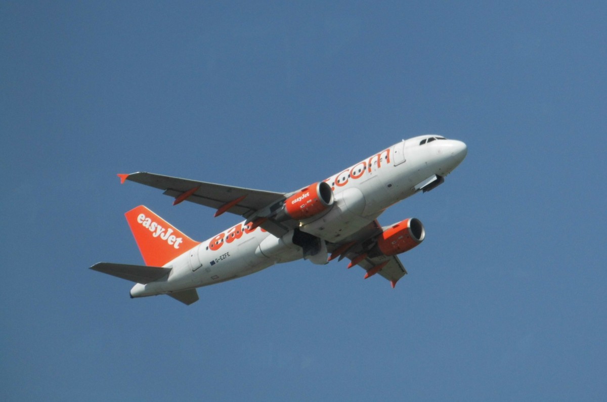 Ein 2009 ausgelieferter Airbus A 319-111 der britischen Billigfluggesellschaft easyJet mit der Kennung G-EZFE am 19.07.2014 beim Abheben vom Hamburg-Airport
