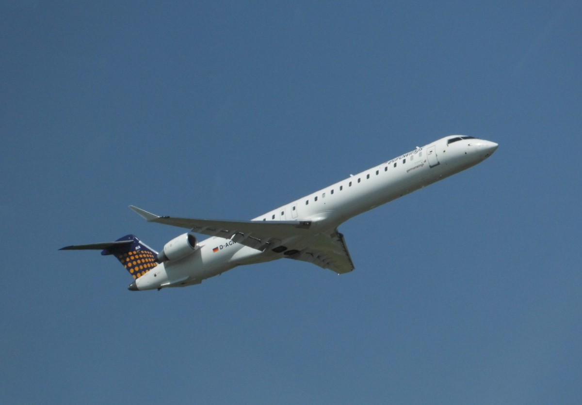 Ein 2010 ausgelieferter Bombardier CRJ-900LR der Eurowings mit der Kennung D-ACNL am 19.07.14 beim Abheben vom Hamburg-Airport