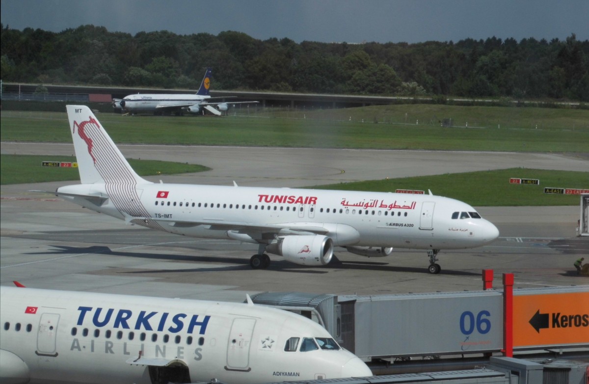 Ein 2012 ausgelieferter Airbus A 320-214 der Tunisair mit der Kennung TS-IMT am 19.07.2014 auf dem Hamburg Airport
