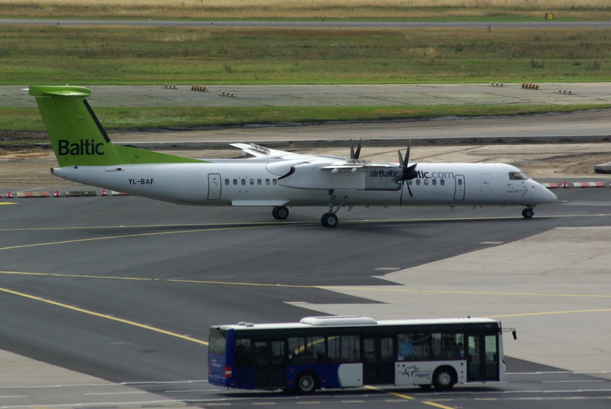 YL-BAF Air Baltic De Havilland Canada DHC-8-402Q Dash 8 zum Start in Frankfurt am 16.07.2014