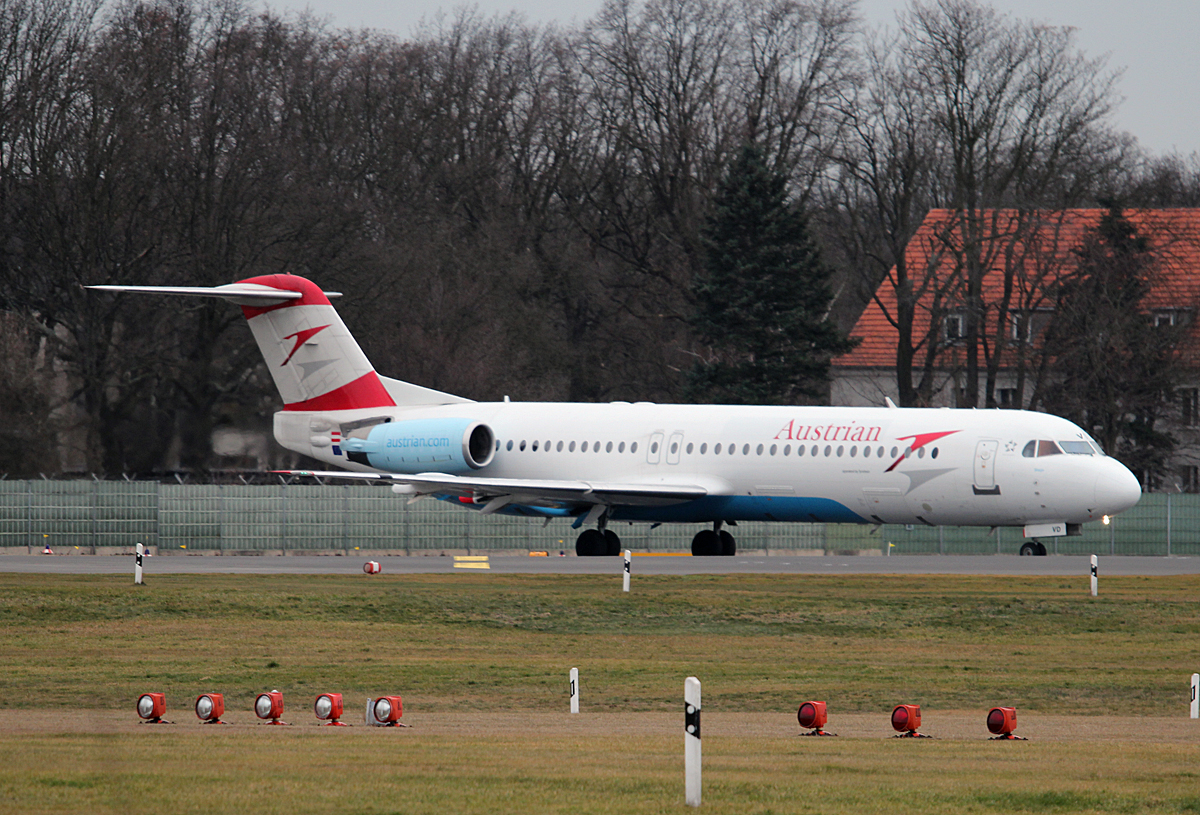 Austrian Airlines Fokker 100 OE-LVD kurz vor dem Start in Berlin-Tegel am 13.02.2014