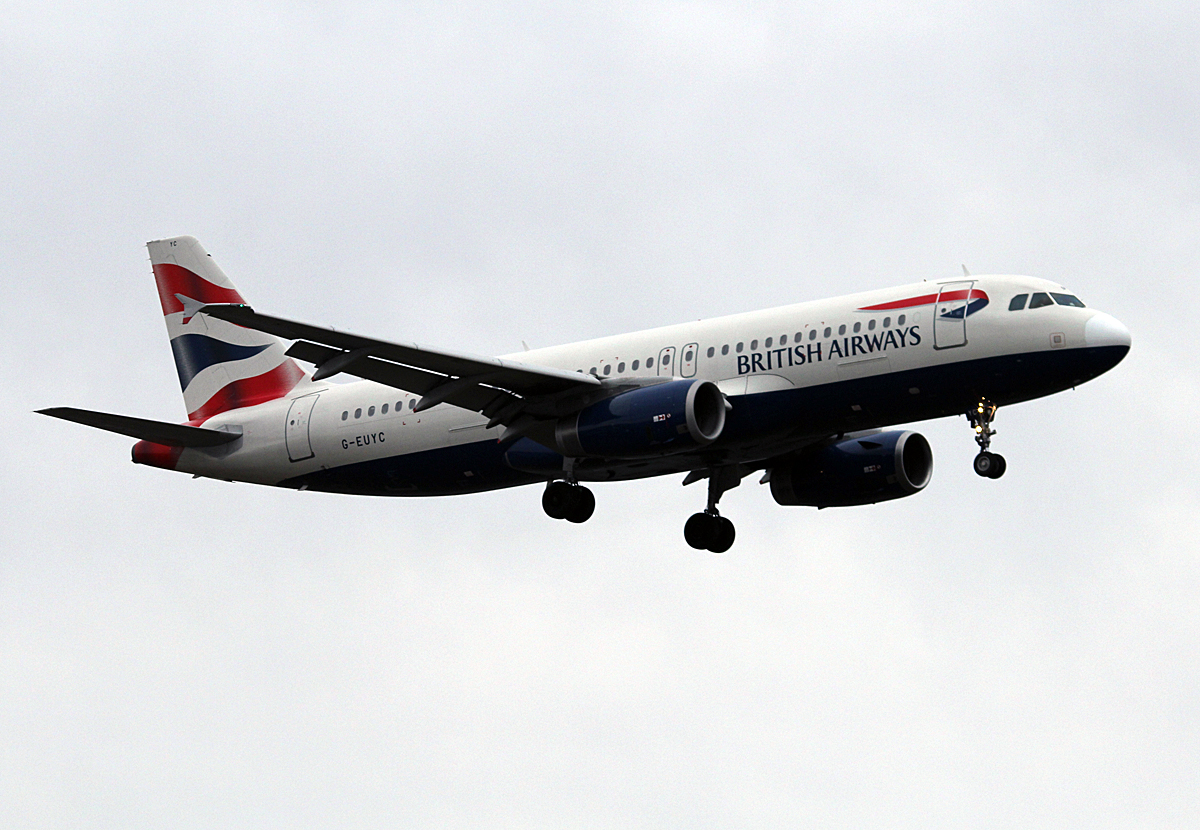 British Airways A 320-232 G-EUYC bei der Landung in Berlin-Tegel am 13.02.2014