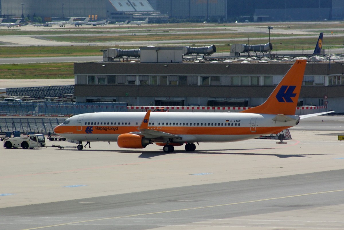 D-ATUF TUIfly Boeing 737-8K5 (WL) Ende der Abfertigung in Frankfurt am 16.07.2014