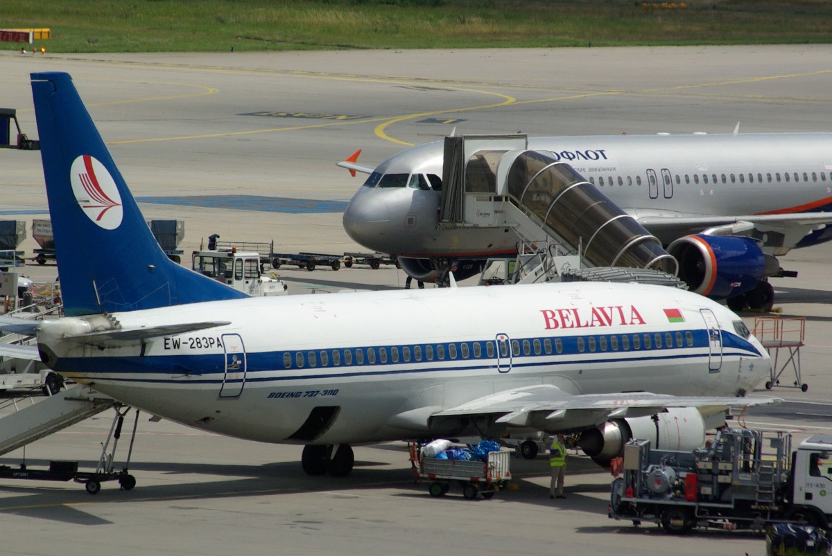 EW-283PA Belavia Boeing 737-3Q8 Abfertigung in Frankfurt am 16.07.2014