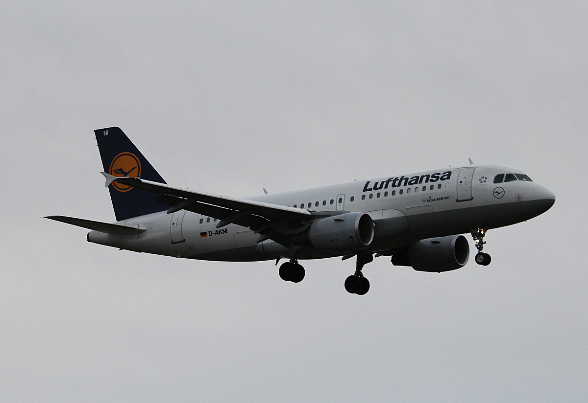 Lufthansa A 319-112 D-AKNI bei der Landung in Berlin-Tegel am 13.02.2014