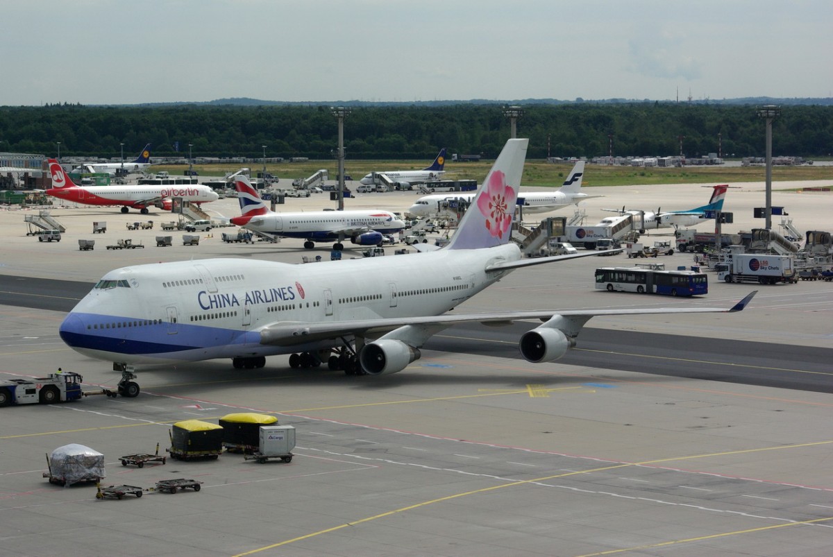 N168CL China Airlines Boeing 747-409 Ende der Abfertigung in Frankfurt am 16.07.2014