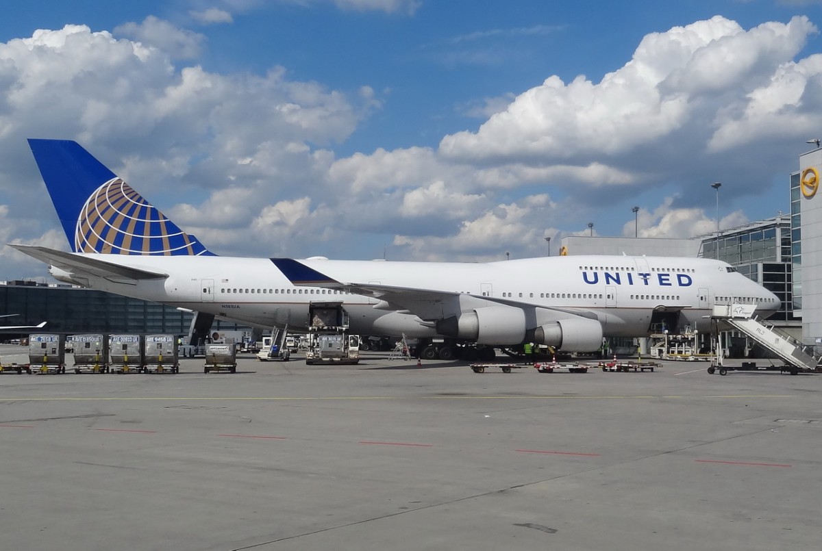 N181UA United Airlines Boeing 747-422 in Frankfurt am 16.07.2014 während der Abfertigung