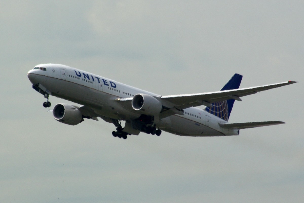 N780UA United Airlines Boeing 777-222 in Frankfurt am 16.07.2014 gestartet