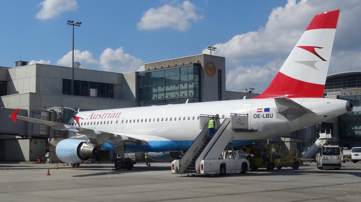 OE-LBU Austrian Airlines Airbus A320-214 in Frankfurt am 16.07.2014 bei der Abfertigung