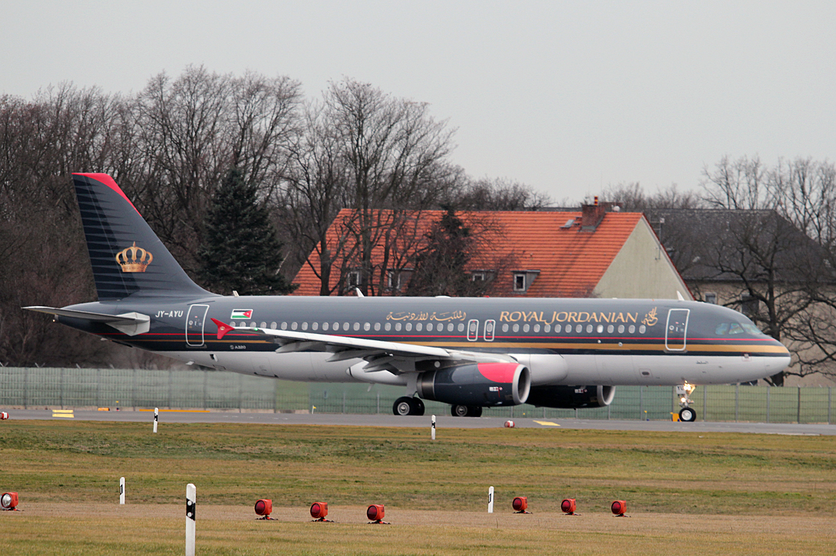 Royal Jordanian A 320-232 JY-AYU bei der Landung in Berlin-Tegel am 13.02.2014