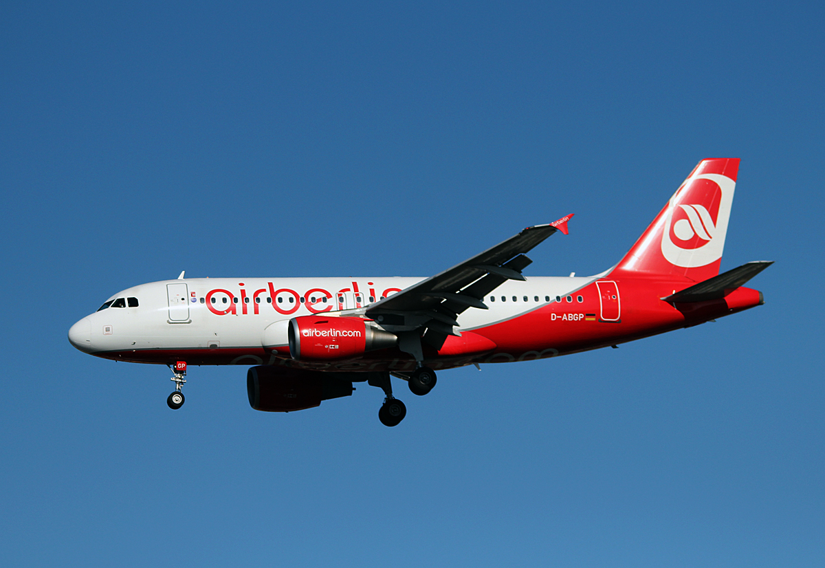 Air Berlin A 319-112 D-ABGP bei der Landung in Berlin-Tegel am 22.02.2014