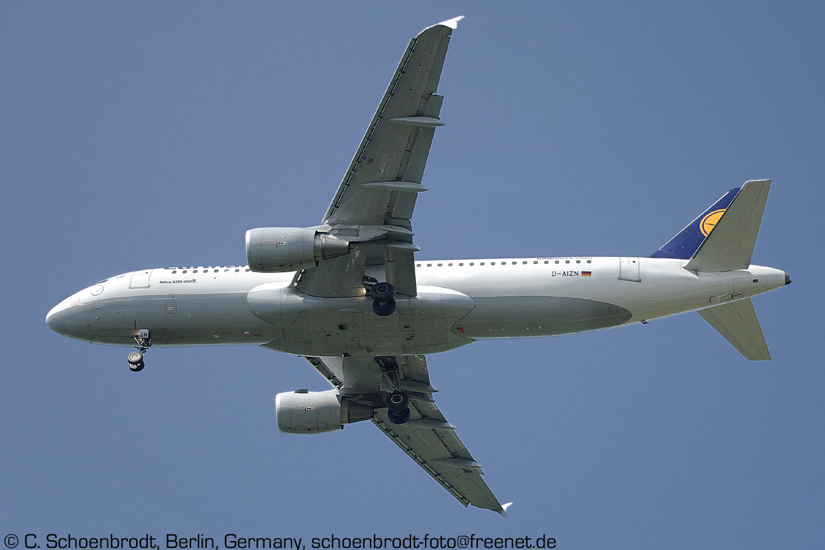 Berlin Tegel, "Lufthansa" Airbus A 320-200 D-AIZN im Landeanflug auf TXL, 06.08.2014