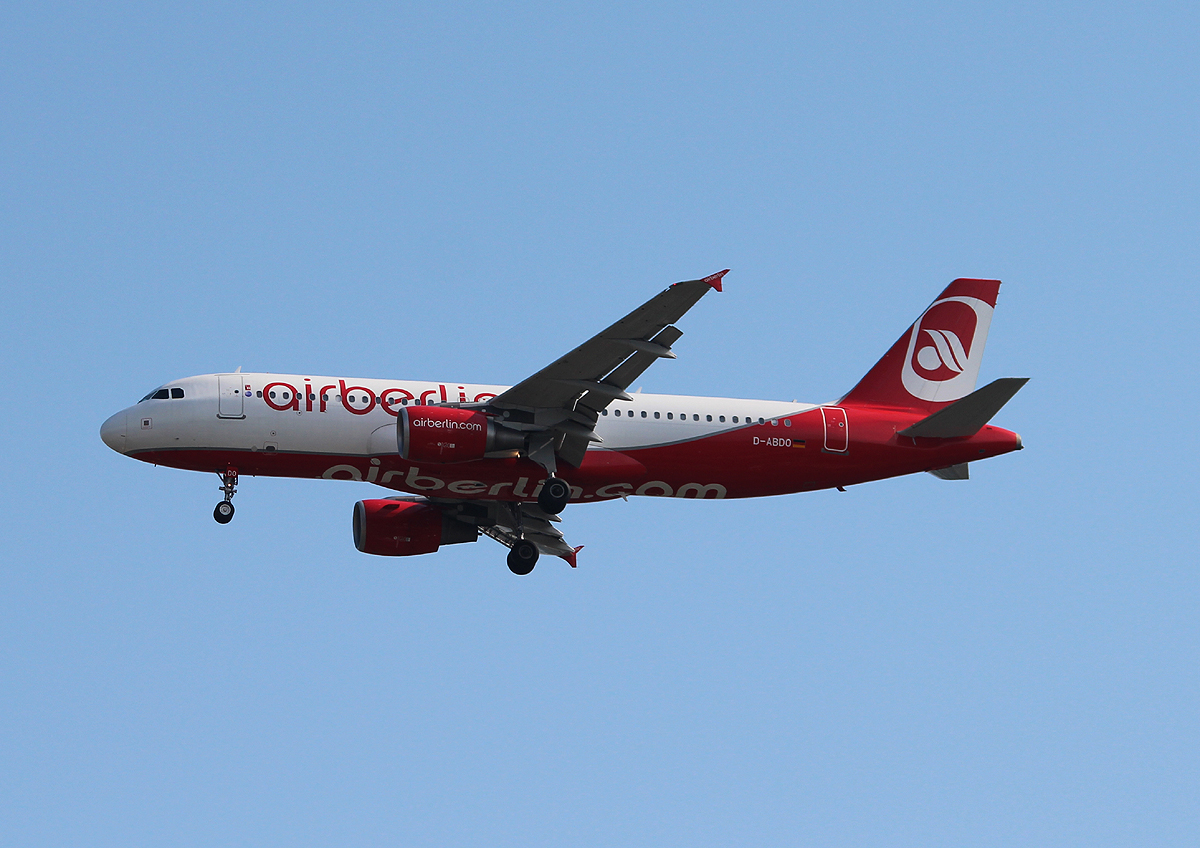 Air Berlin A 320-214 D-ABDO bei der Landung in Berlin-Tegel am 18.06.2013