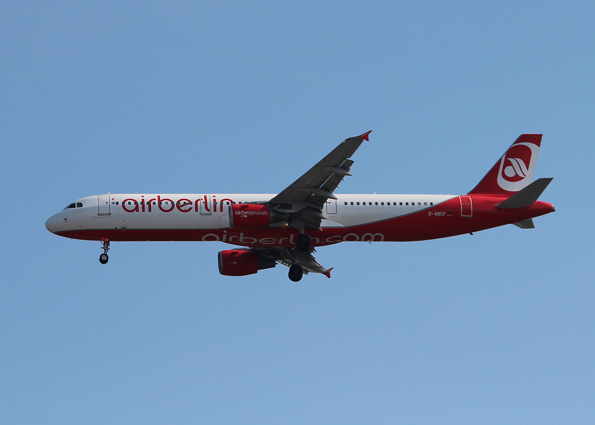 Air Berlin A 321-211 D-ABCF bei der Landung in Berlin-Tegel am 18.06.2013