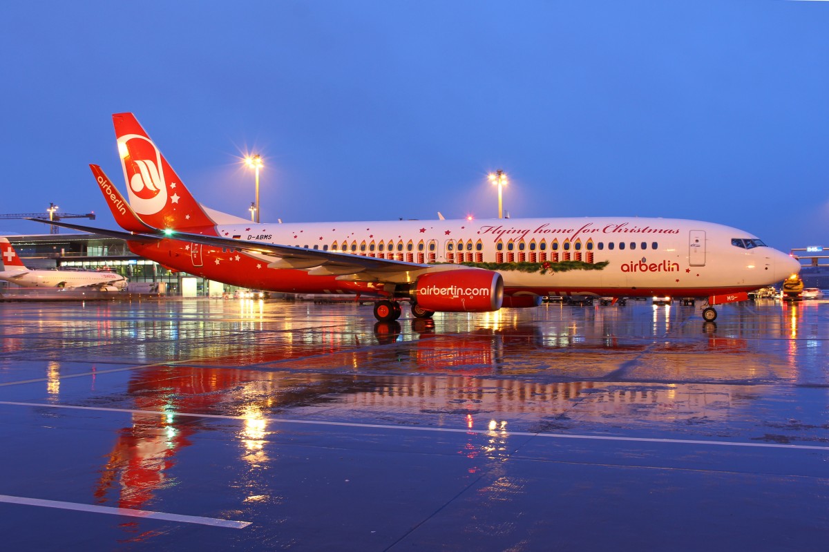 Air Berlin, D-ABMS, Boeing 737-800, 26. Dezember 2013, ZRH Zürich, Switzerland. Mit der "Flying home for Christmas" Bemahlung.