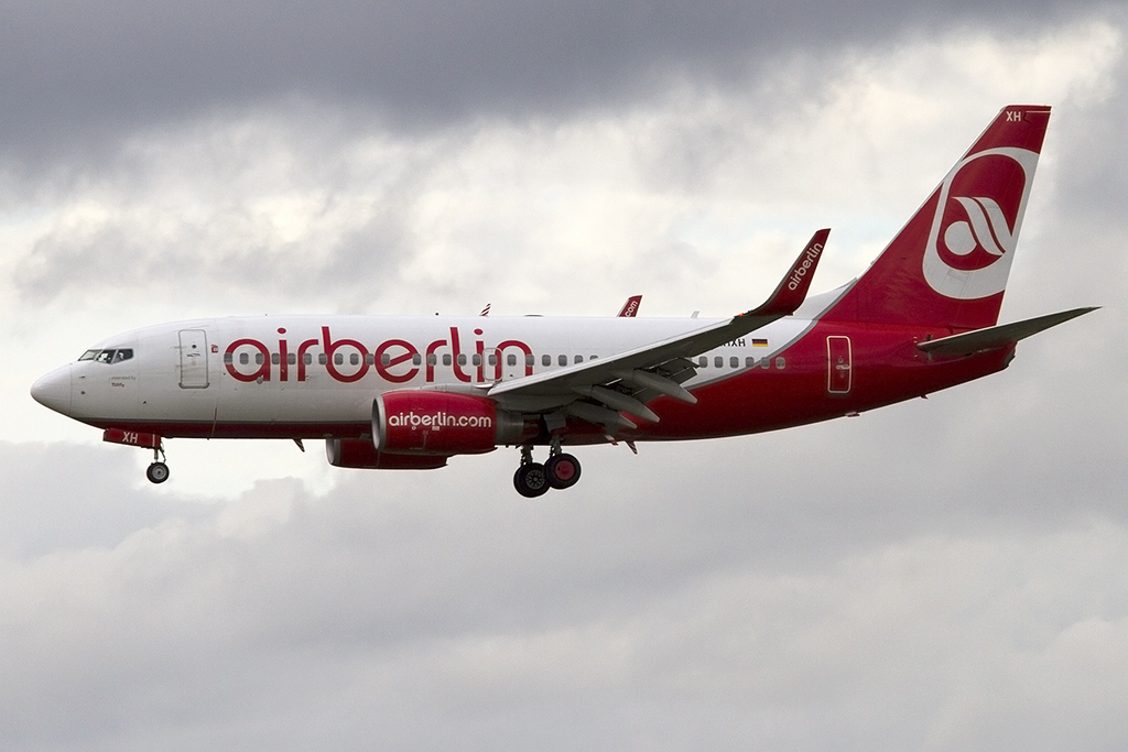 Air Berllin B 737-7K5 D-AHXC bei der Landung in Berlin-Tegel am 18.06.2013