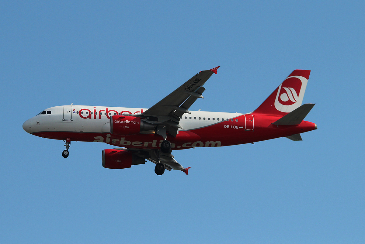 Air Berlin(Niki) A 319-112 OE-LOE bei der Landung in Berlin-Tegel am 18.06.2013
