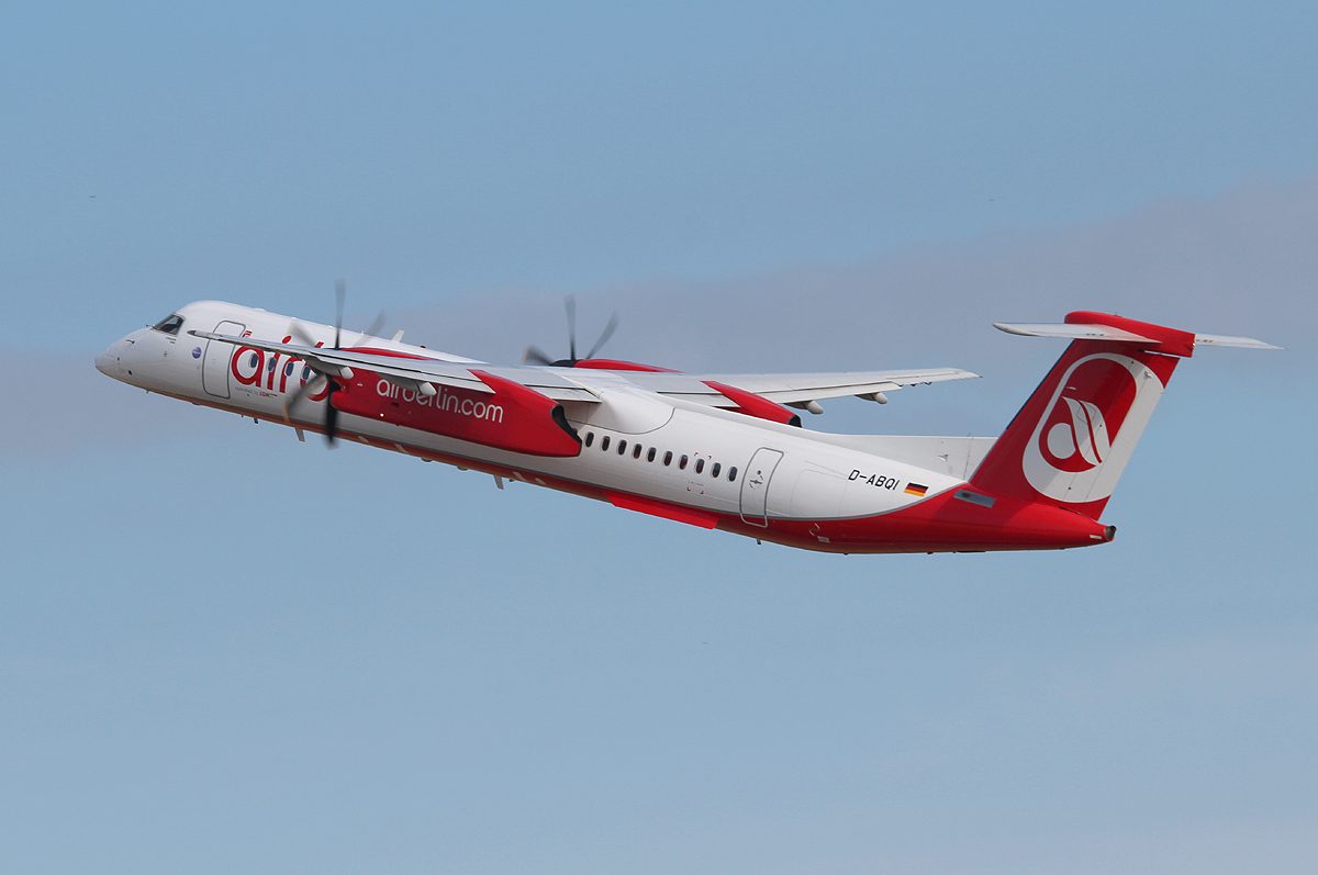 Air Berlin DHC-8-402Q D-ABQI beim Start in Berlin-Tegel am 06.07.2013