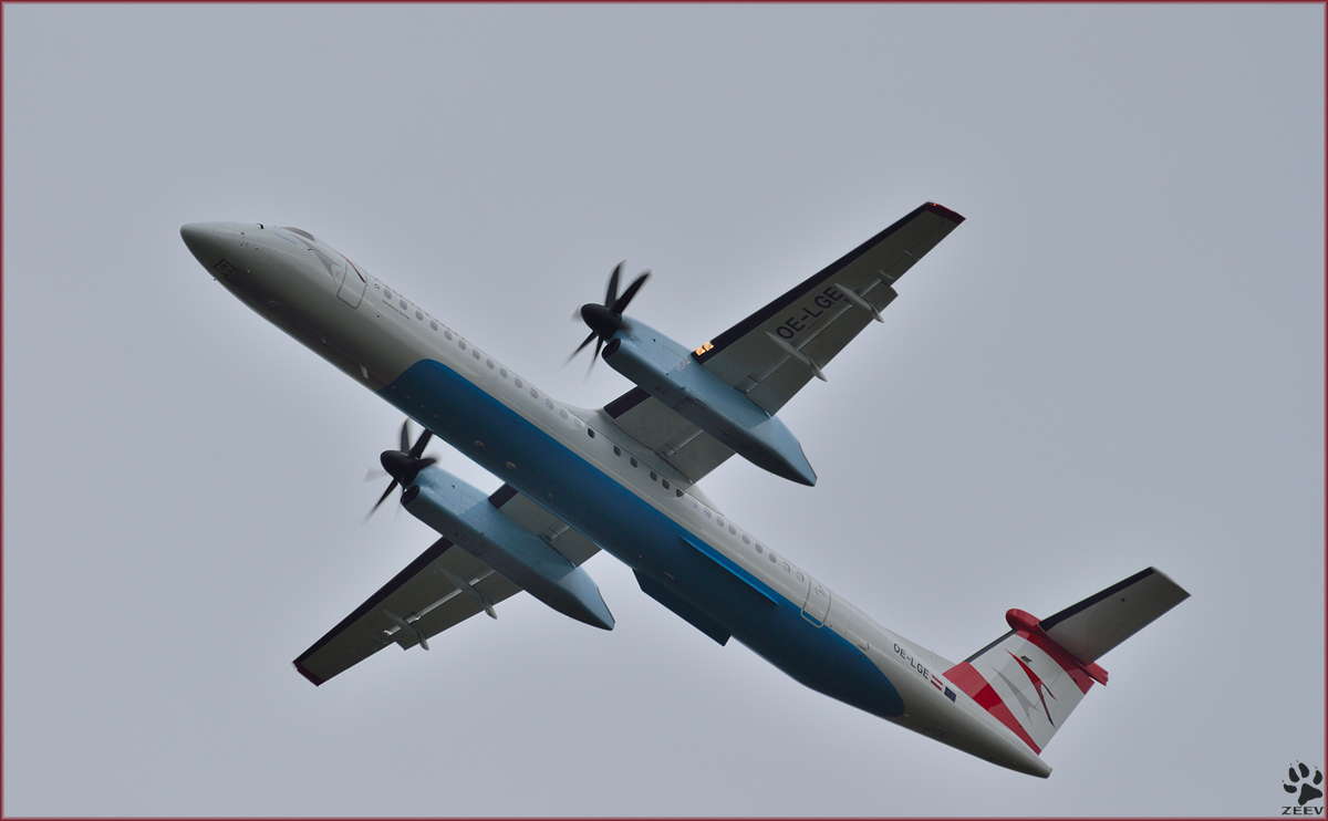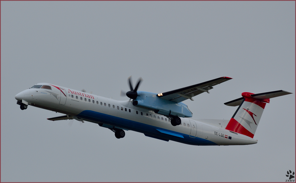 Austrian OE-LGE, DHC-8-402Q bei Trainingsflug auf Maribor Flughafen MBX. /20.1.2014
