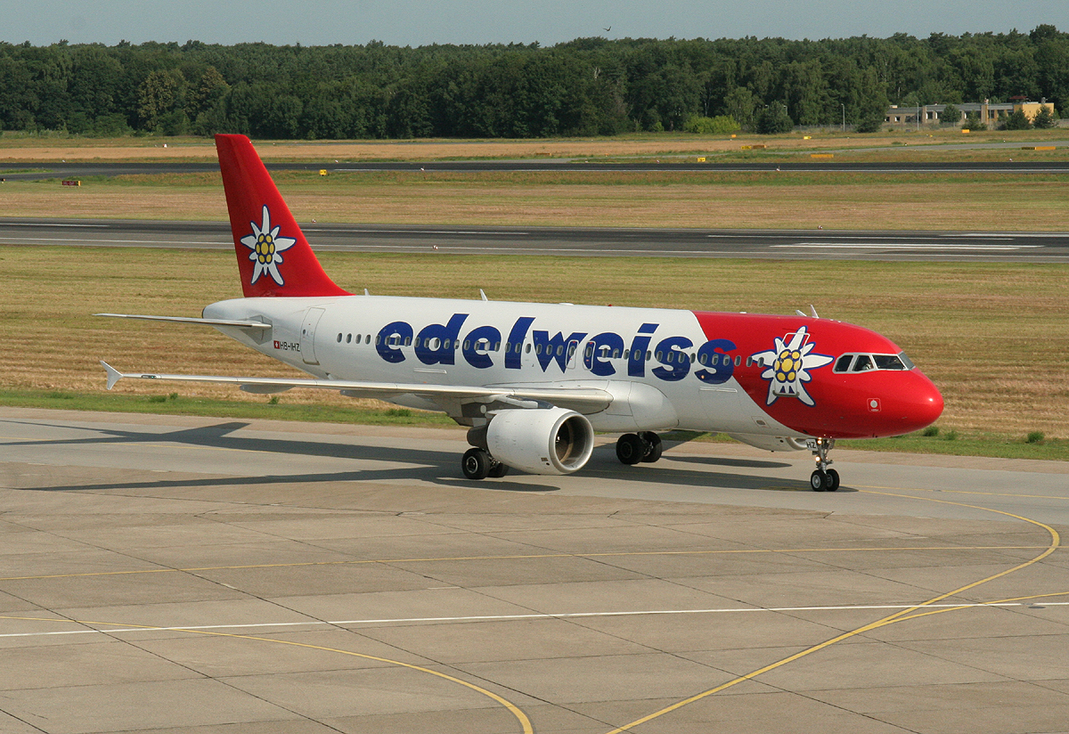 Edelweiss Air A 320-214 HB-IHZ bei der Ankunft in Berlin-Tegel am 06.07.2013