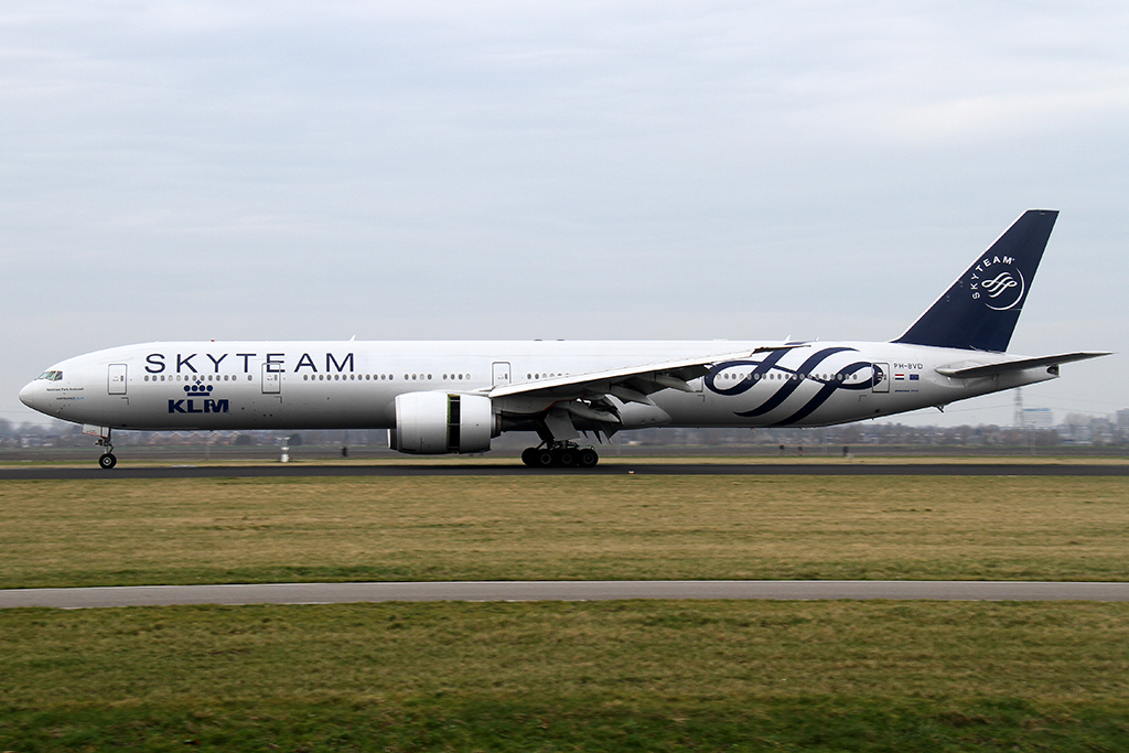 KLM SkyTeam 777 300ER (Reg.: PH-BVD) in AMS am 19.01.2014 leider ohne Licht