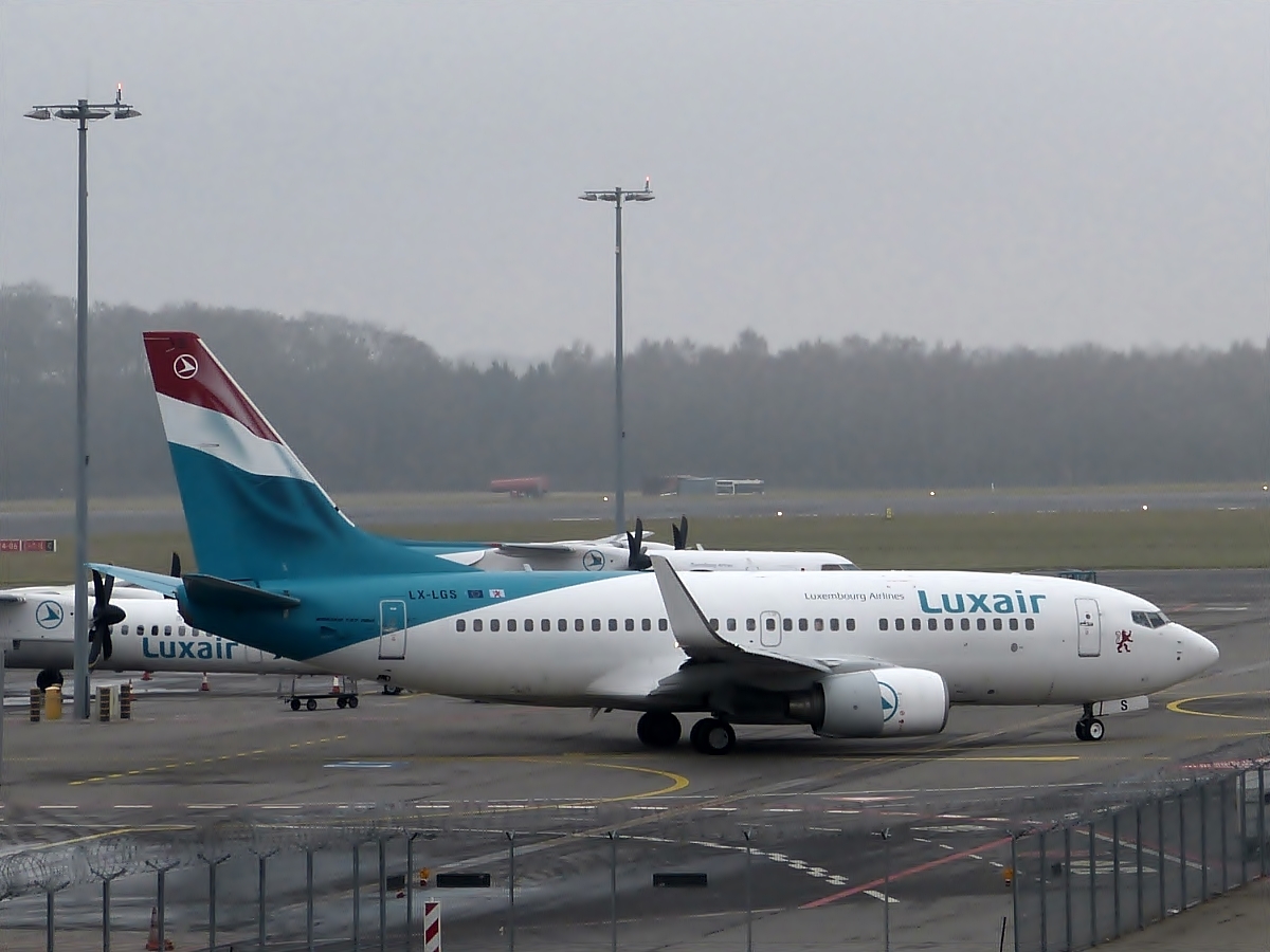 LX-LGS Luxair Boeing 737-7C9 auf dem Weg zur Startbahn auf dem Flughafen von Luxemburg. 22.01.2014