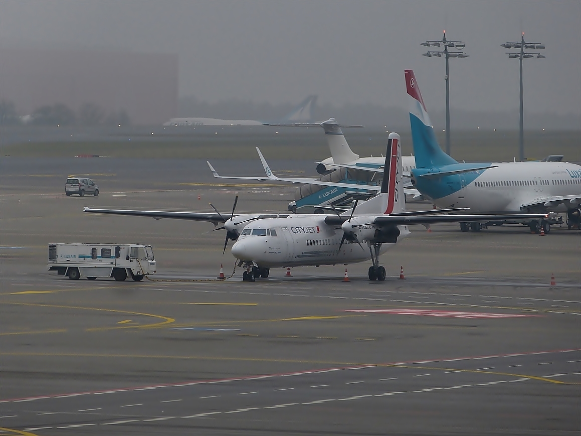 OO-VLQ, City Jet Fokker 50, der Fluggesellschaft VLM, aufgenommen am Flughafen in Luxemburg am 22.01.2012