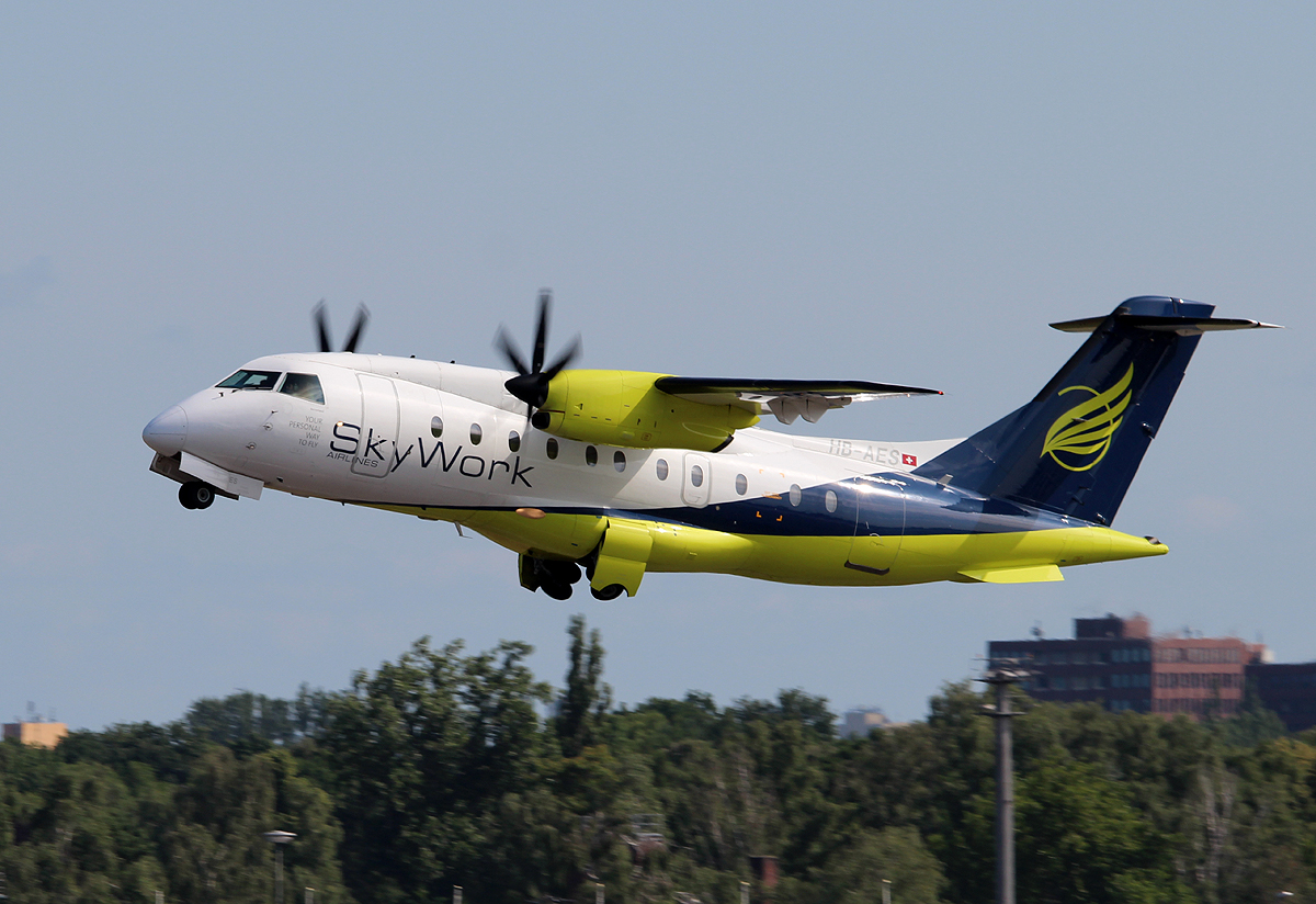 Sky Work Airlines Do-328-110 HB-AES beim Start in Berlin-Tegel am 06.07.2013