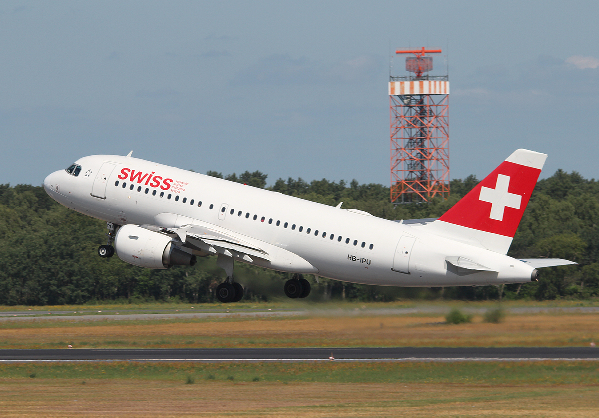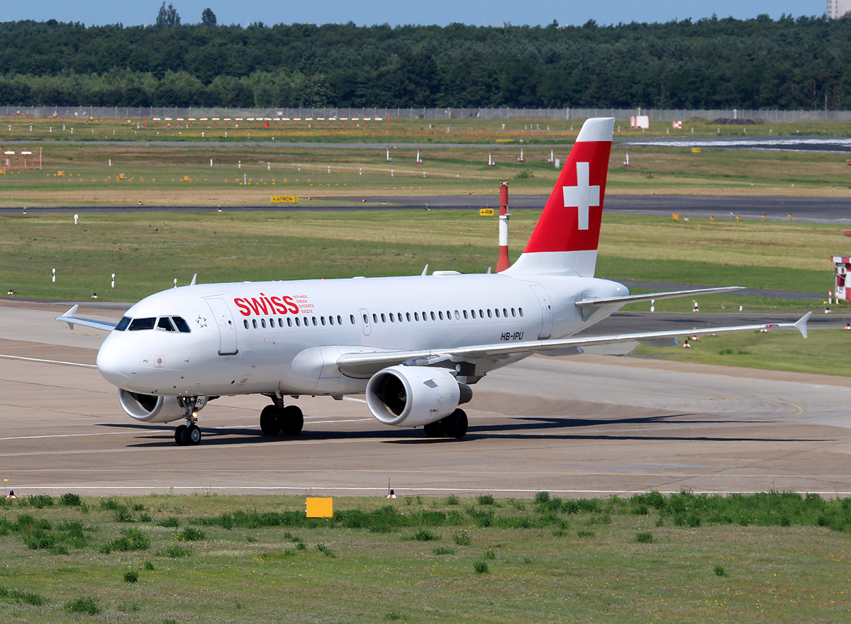 Swiss A 319-112 HB-IPU bei der Ankunft in Berlin-Tegel am 06.07.2013