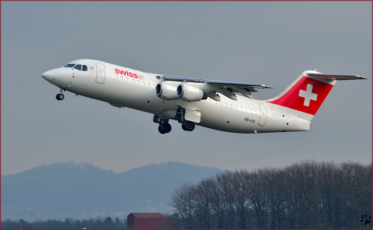 Swiss HB-IXS, Avro RJ100 bei Trainingsflug auf Maribor Flughafen MBX. /22.1.2014