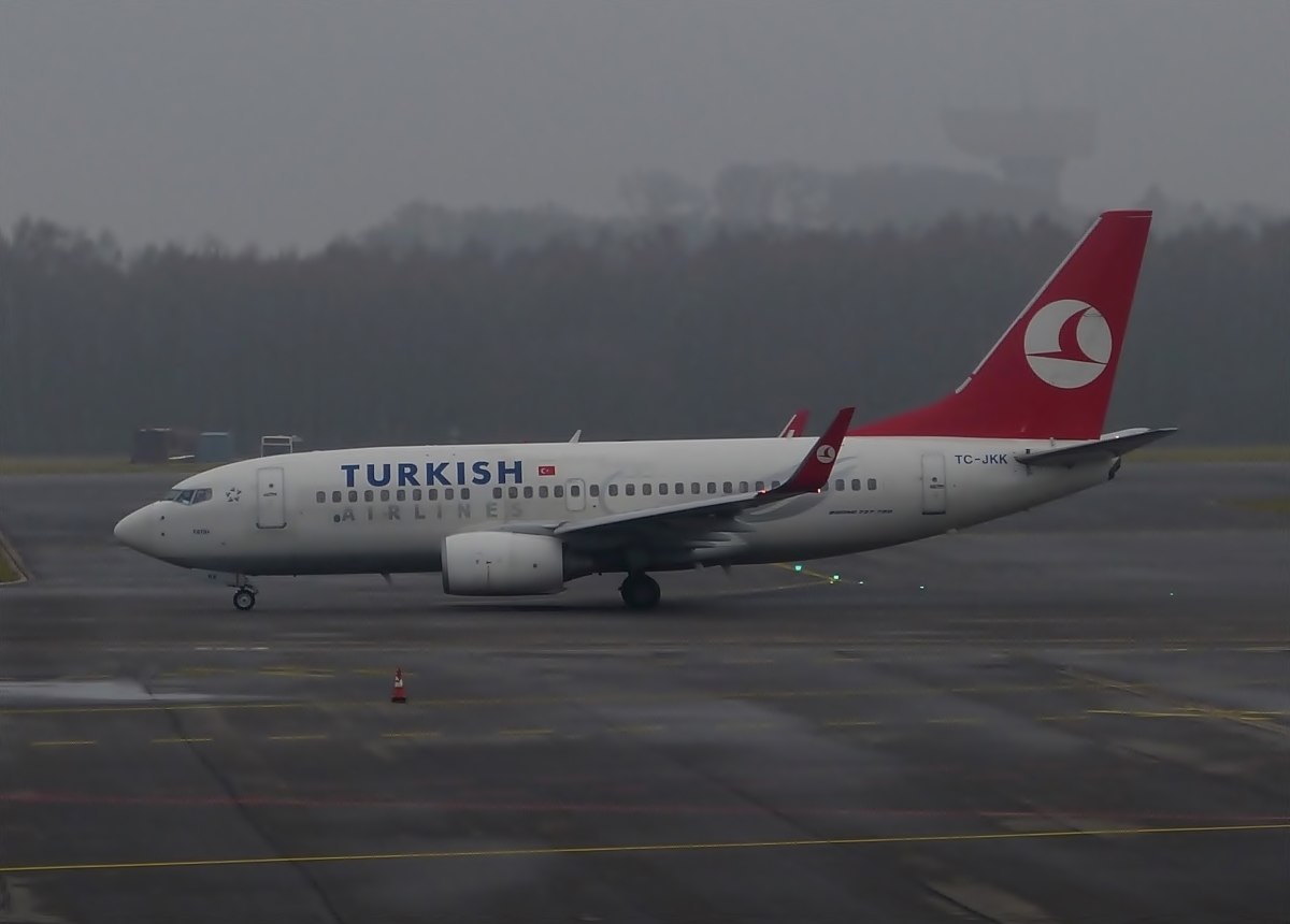TC-JKK Turkish Airlines Boeing 737-752 auf dem Weg zur Startbahn des Flughafens in Luxemburg. 22.01.2014