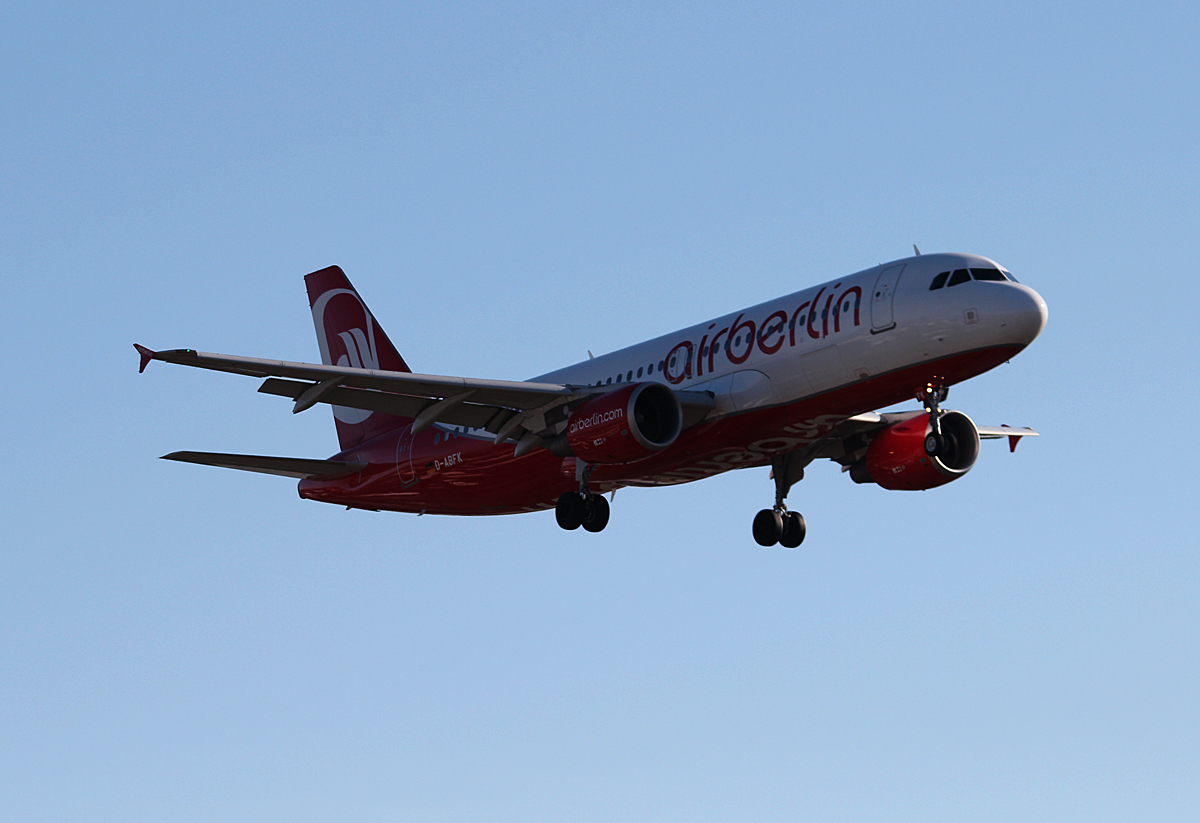 Air Berlin A 320-214 D-ABFK bei der Landung in Berlin-Tegel am 13.02.2014