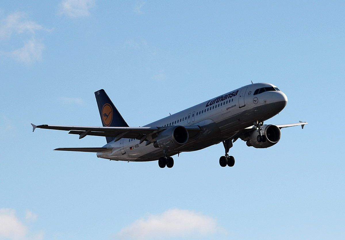 Lufthansa A 320-214 D-AIZE bei der Landung in Berlin-Tegel am 13.02.2014