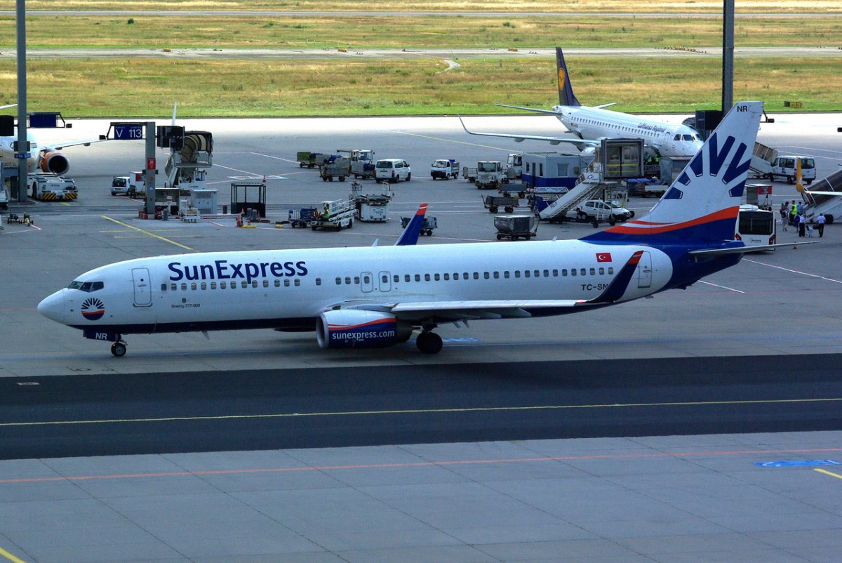 TC-SNH SunExpress Boeing 737-8FH (WL) während der Abfertigung in Frankfurt 15.07.2014