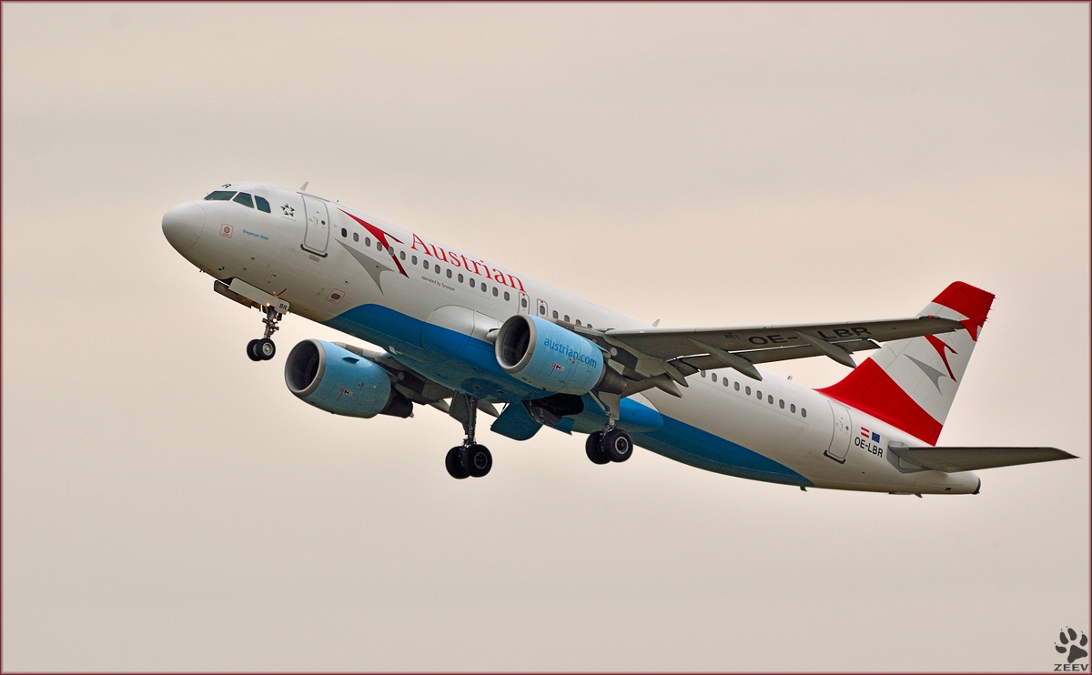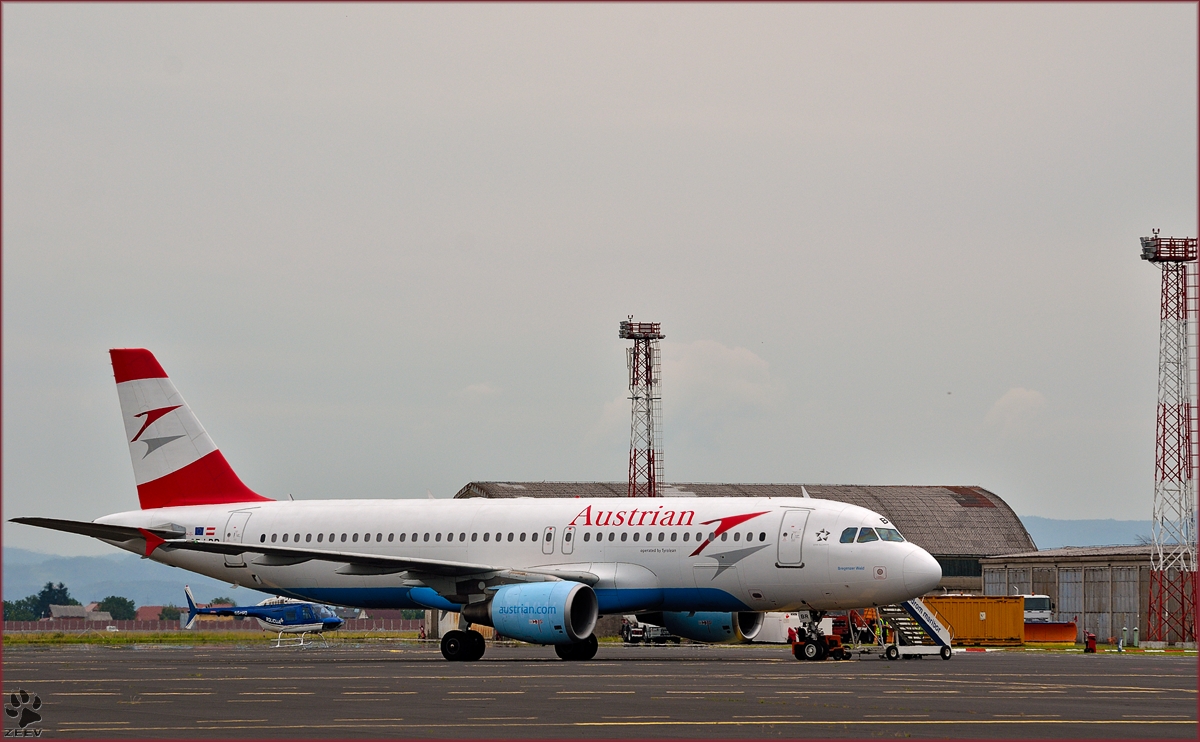 Austrian OE LBR, Airbus A320-214 auf Maribor Flughafen MBX. /17.6.2014