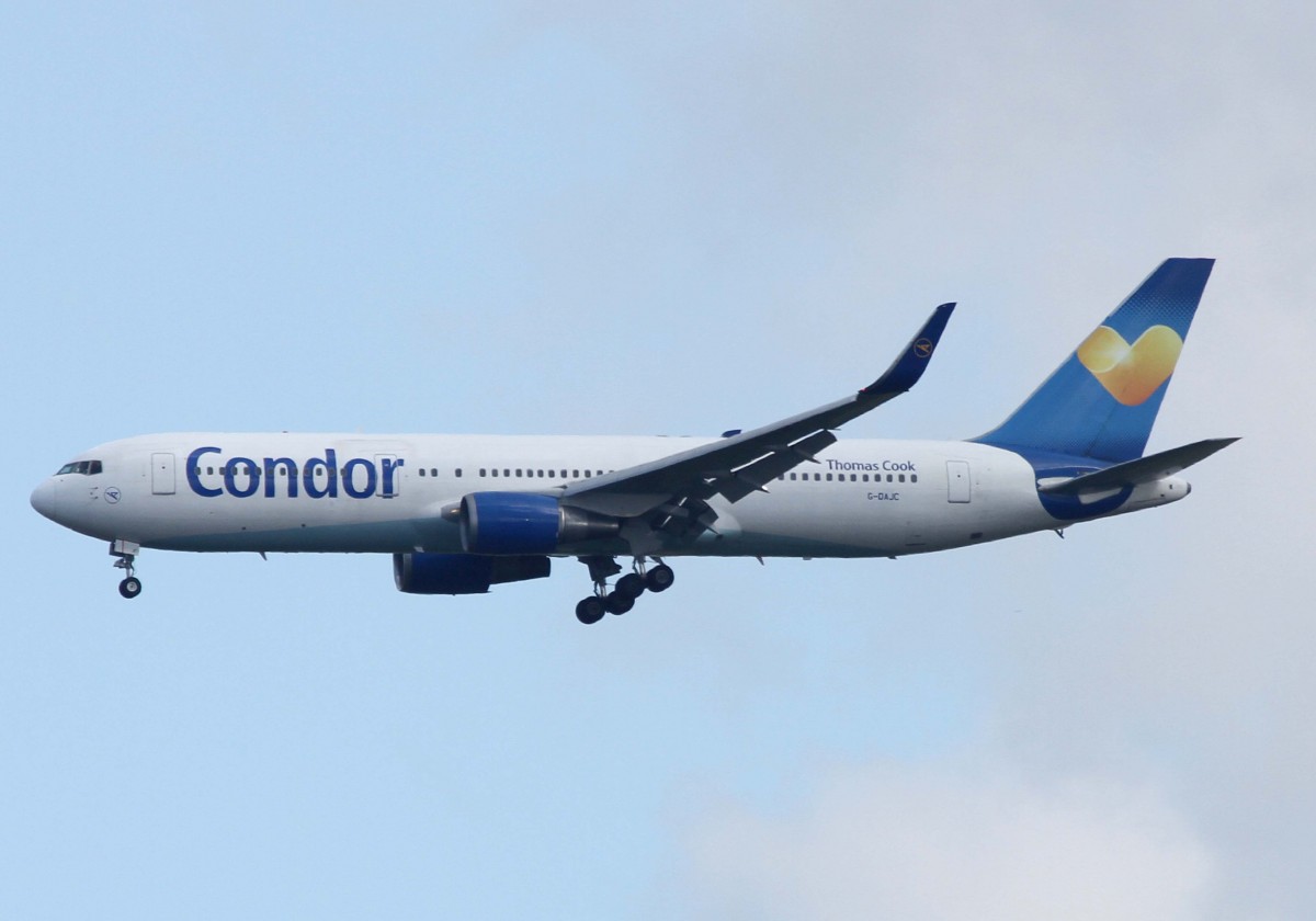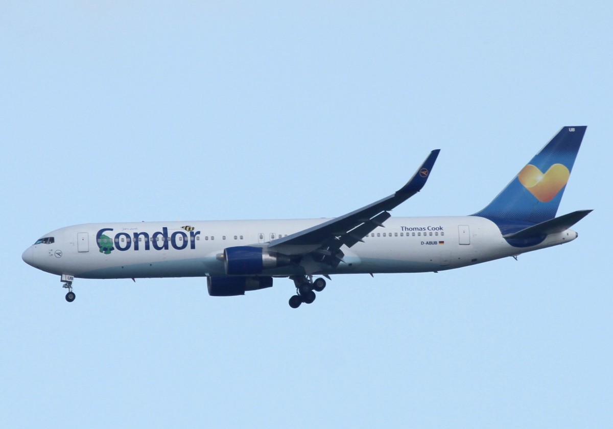 Condor, G-DAJC, Boeing, 767-300 ER (TC-Lease & Mischlackierung "Sunny Hart"), 18.04.2014, FRA-EDDF, Frankfurt, Germany
