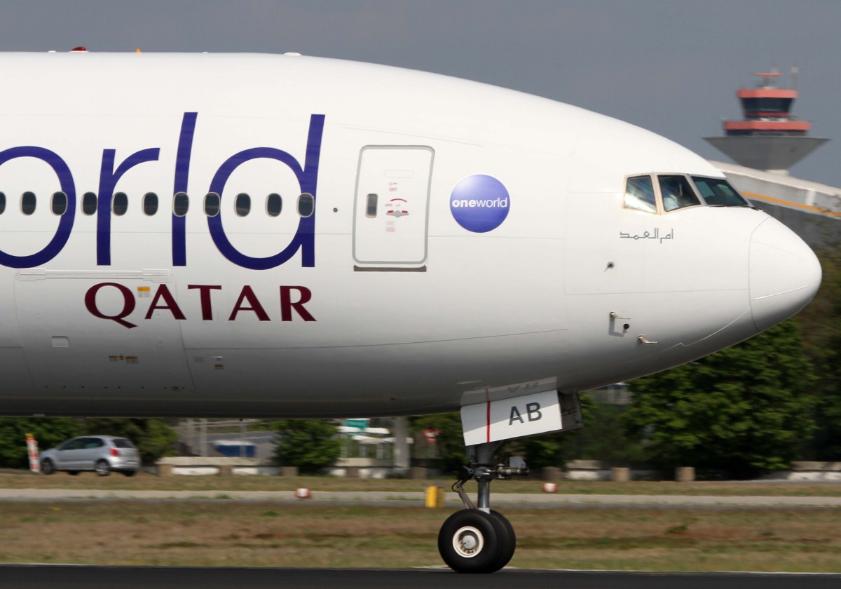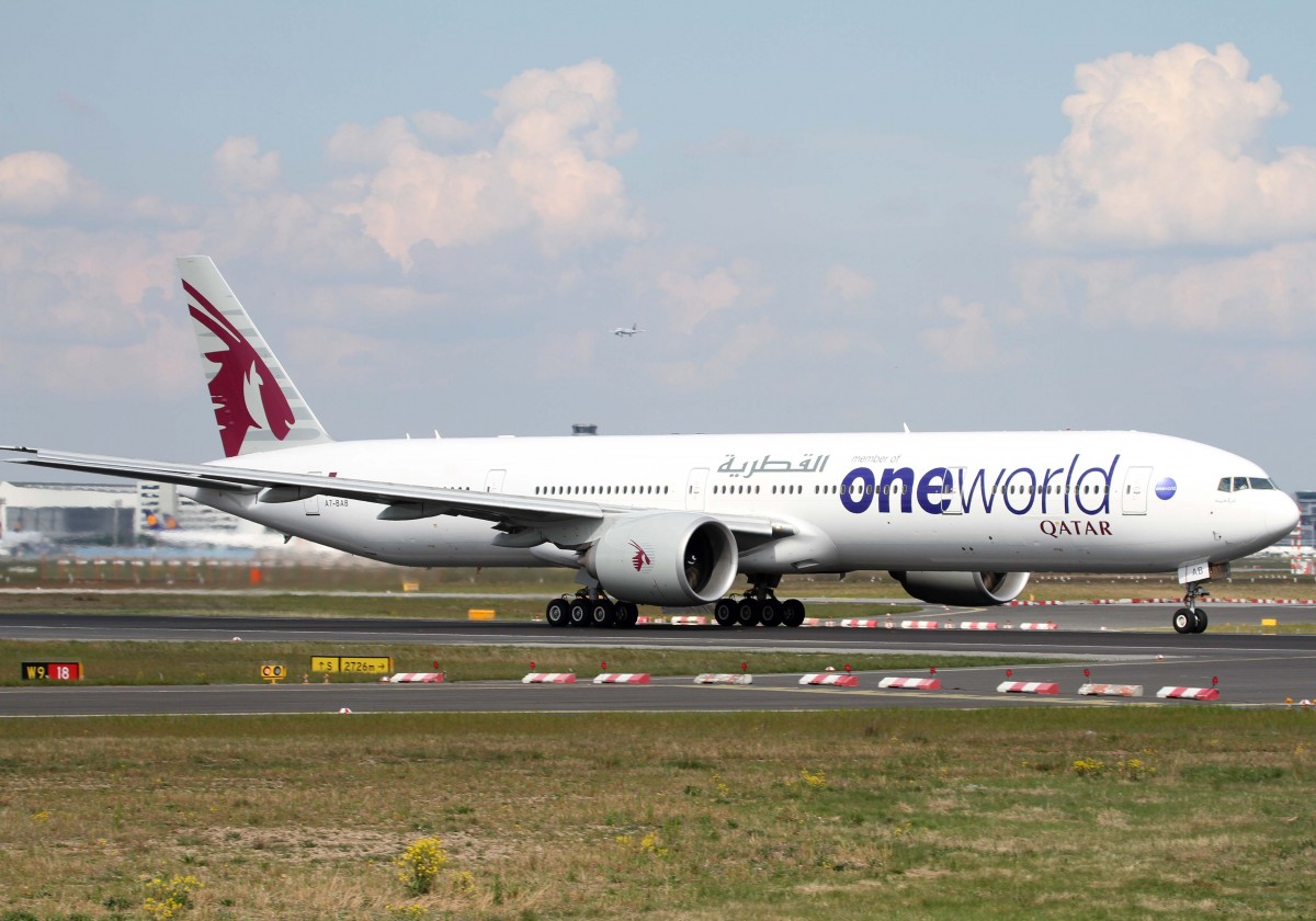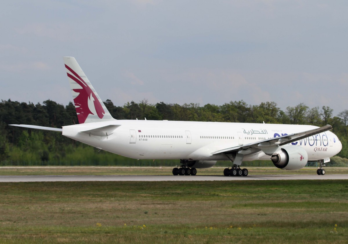 Qatar Airways, A7-BAB "Um-Alamad", Boeing, 777-300 ER (Oneworld-Lackierung), 23.04.2014, FRA-EDDF, Frankfurt, Germany